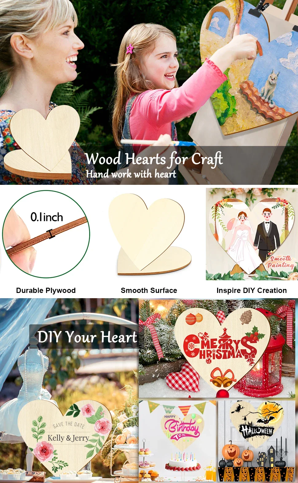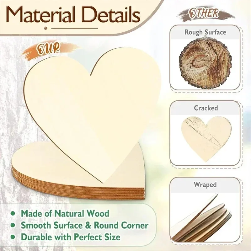 ✨ Smooth Surface: The unfinished wood Hearts is made of poplar plywood that has a smooth and sturdy surface, perfect to paint, stained, and pyrography.