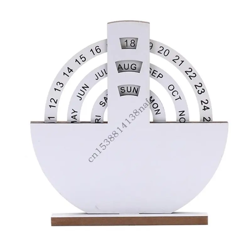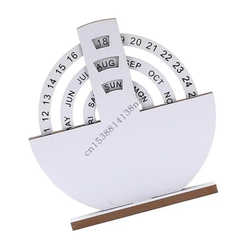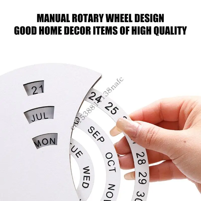 594F Natural Wooden Manual Rotating Annual Calendar Desktop Ornament Creative Traditional Design for Home Office Decoration